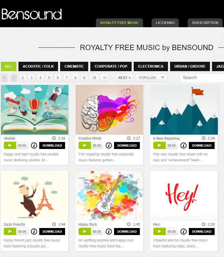 Bensound 유튜브용 무료음악 사이트 고품질 무료 저작권 음악